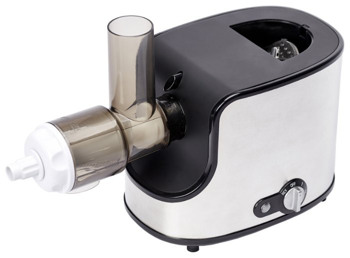 Сбоку располагается переключатель скоростей, с его помощью можно выбрать частоту вращения ножей или режим реверса, который пригодится, если в процессе работы в загрузочную камеру попадает, к примеру, кость — ее можно быстро вынуть, не подвергая опасности свои руки и ножи мясорубки.