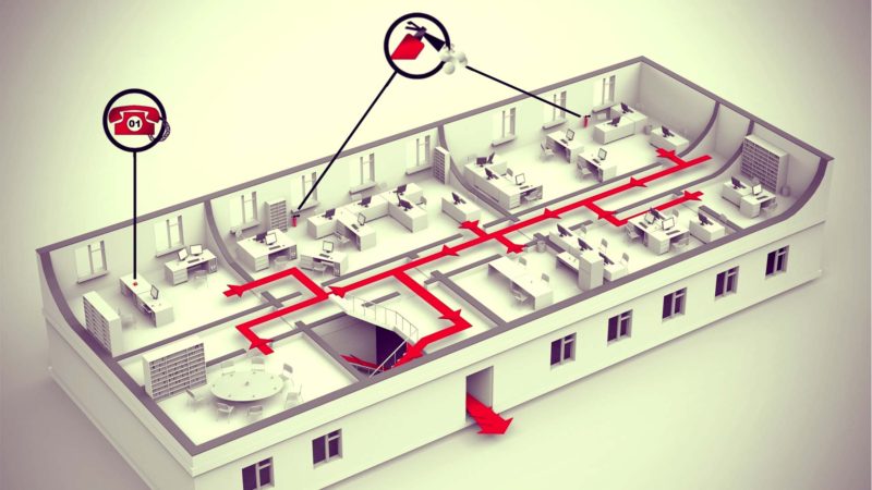Вычисление времени, которое потребуется на безопасный выход посетителей, производится еще на этапе проектирования объекта. При строительстве закладывается достаточное количество основных, запасных выходов и путей следования к ним. Все эти требования прописаны в отдельном ГОСТе. Причем выходы должны располагаться в защищаемом помещении таким образом, чтобы их было видно издалека. Дополнительно направления к ним и сами двери оснащают специальными табличками.