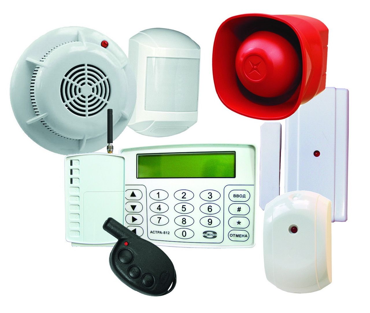 Дымовые датчики оповещают о повышенной задымленности помещения, тепловые устройства реагируют на повышение температуры окружающего воздуха, оптические улавливают инфракрасные лучи. Все перечисленные устройства проводные. Они подключаются к приборам центрального пульта, который принимает поступающие сигналы о начале пожара и включает автоматические системы тушения.