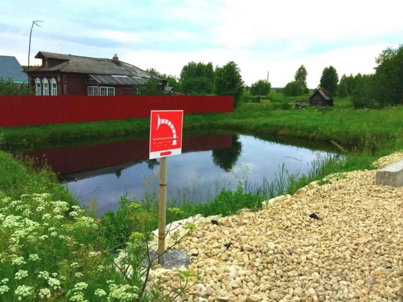 На территории населенного пункта естественные источники воды также могут использоваться для тушения очагов возгорания. Если источник в течение года не высыхает, не замерзает до дна, есть пирс для установки автомашины, в нем содержится нормативно рассчитанный объем воды, то их обозначают, как пожарный водоем.