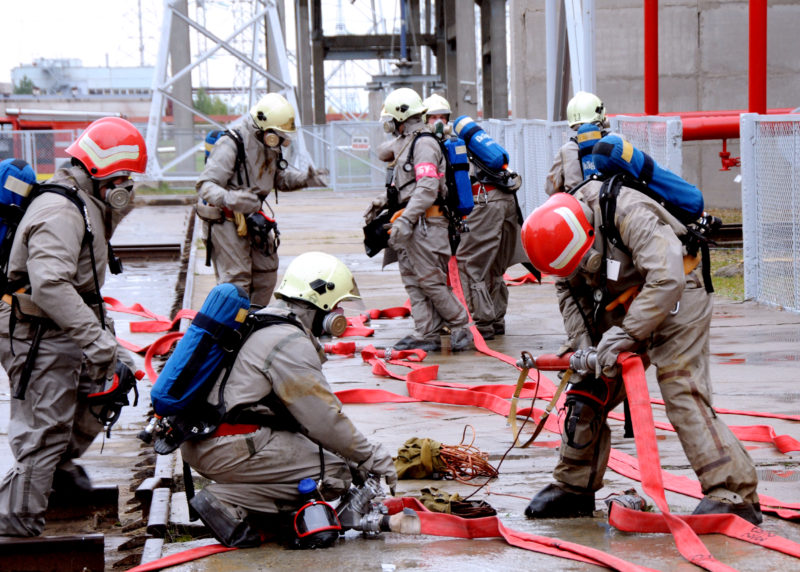 Если необходимо работать в непригодной для дыхания среде, предварительно проводится разведка. Личному составу выдается защитная одежда и персональные средства защиты. Направленное на тушение пожара звено должно состоять как минимум из двух человек.